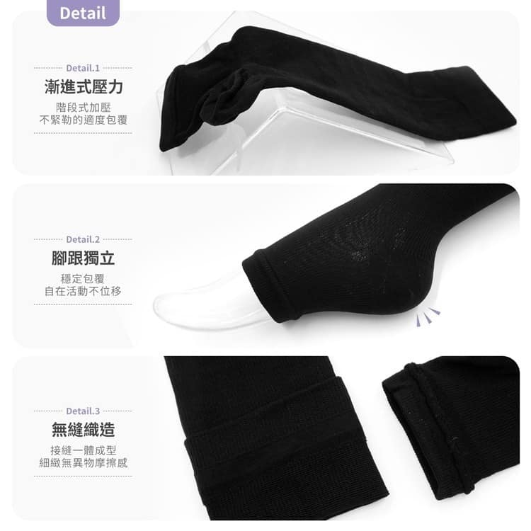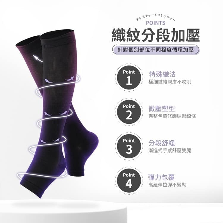 ★分段加壓,鬆緊適中,針對人體工學加壓設計分壓支撐,長久持續穿克服蘿蔔腿