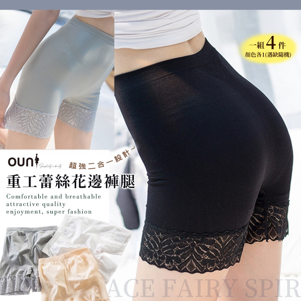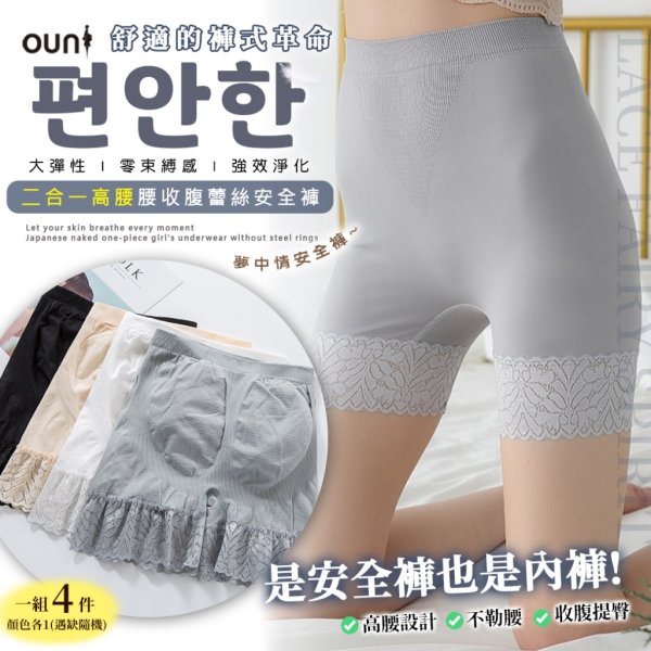 現貨-10 🍀 二合一高腰收腹蕾絲安全褲 【一組四件】 🍀 限量特價$169 帶走四件 「內在美」驚艷到外在👙舒適的褲式革命✨二合一高腰收腹蕾絲安全褲 【一組四件】