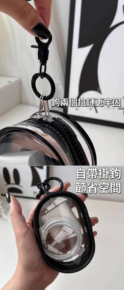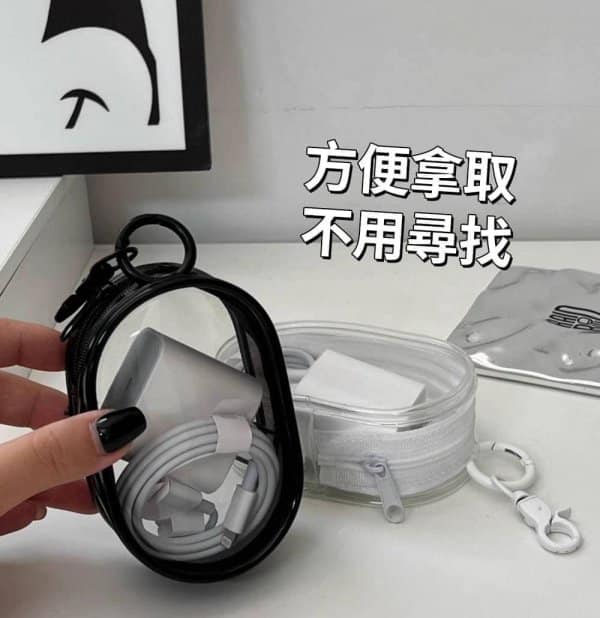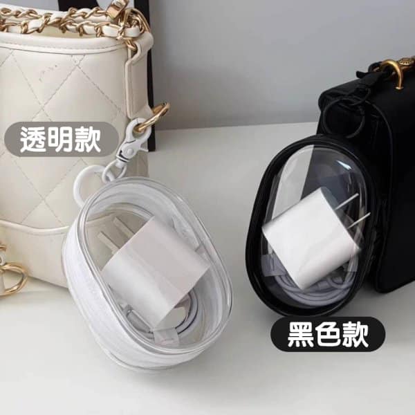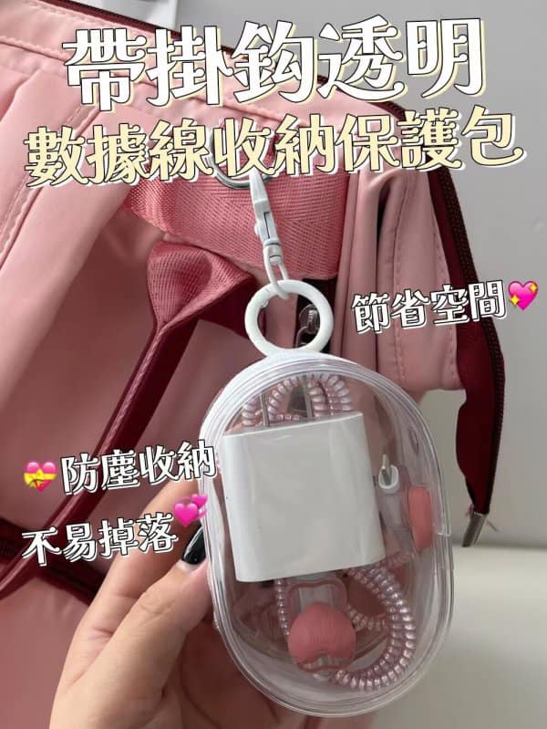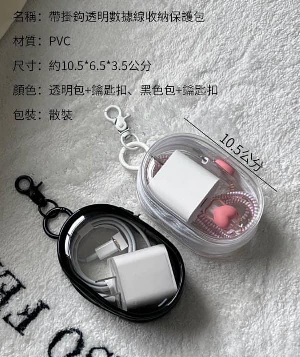 D【無印風】帶掛鉤透明數據線收納保護包(同色3入)