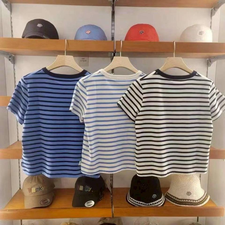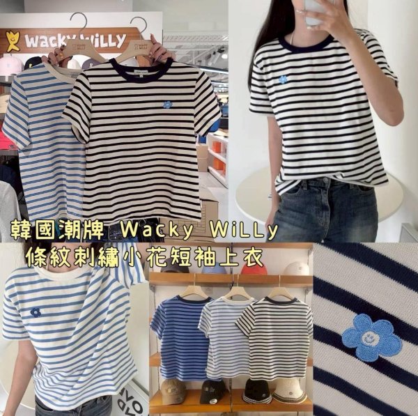 【連線6/18(三)中午12:00收-韓國潮牌 Wacky WiLLy 條紋刺繡小花短袖上衣 】