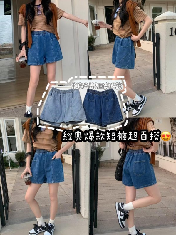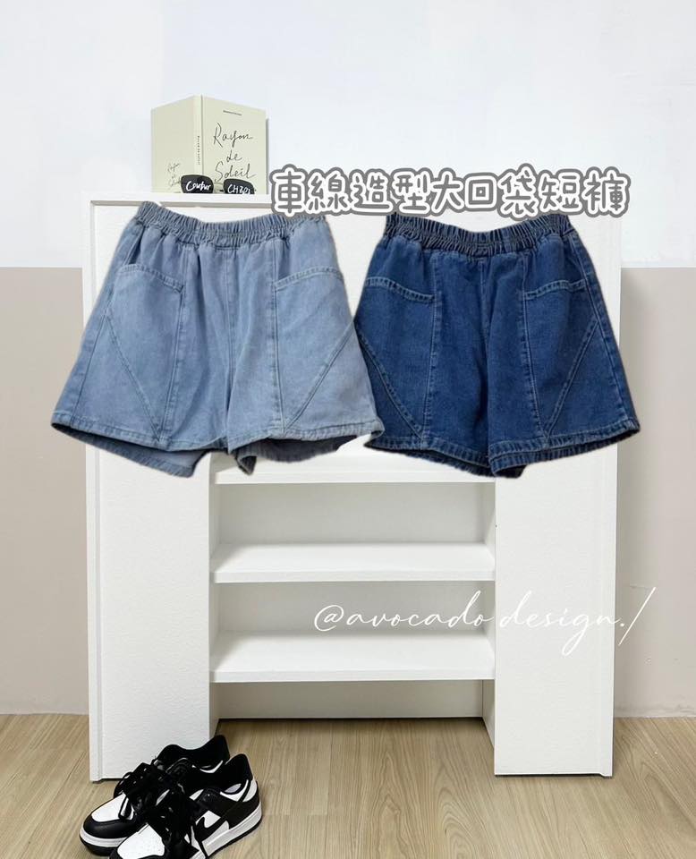 2韓妞 車線造型大口袋牛仔短褲