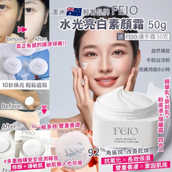 輕奢品牌 FEIO 水光亮白素顏霜 50g 再送FEIO 護手霜50g