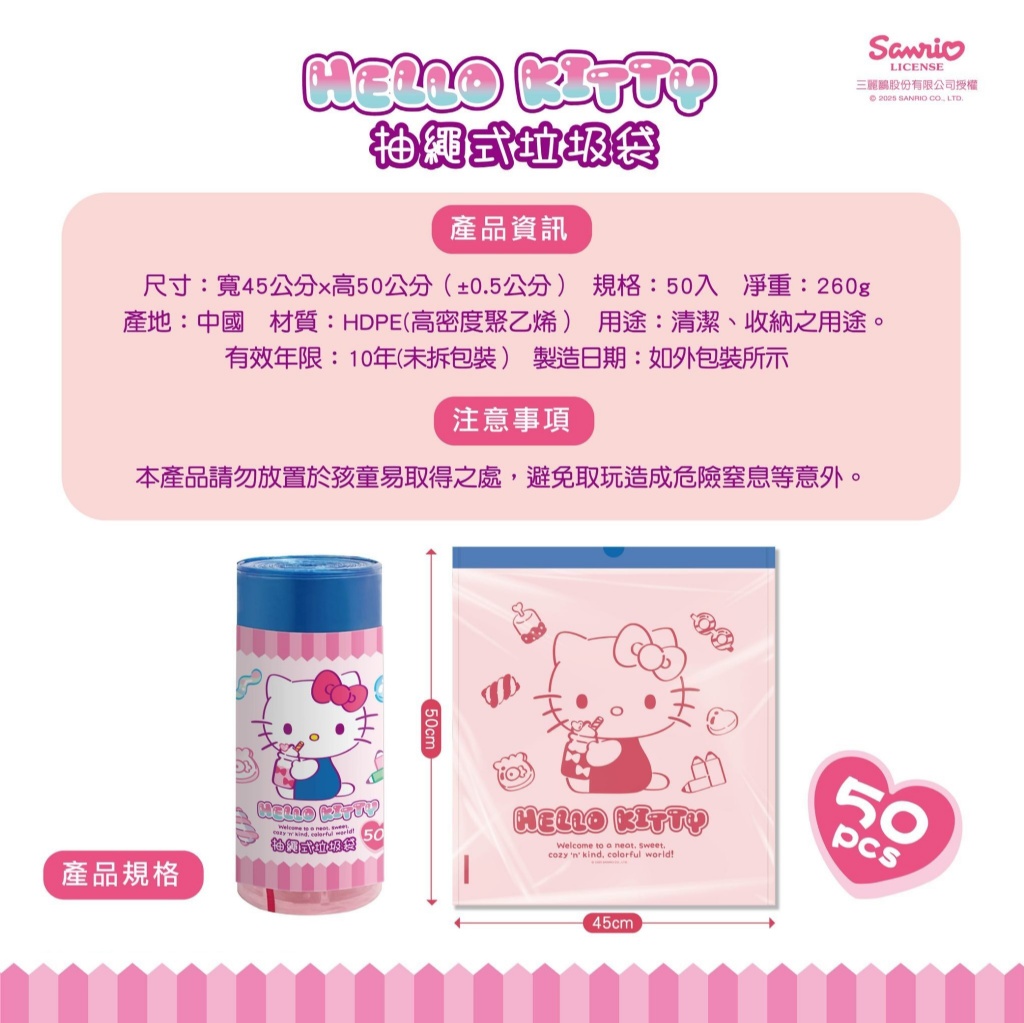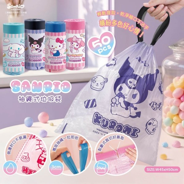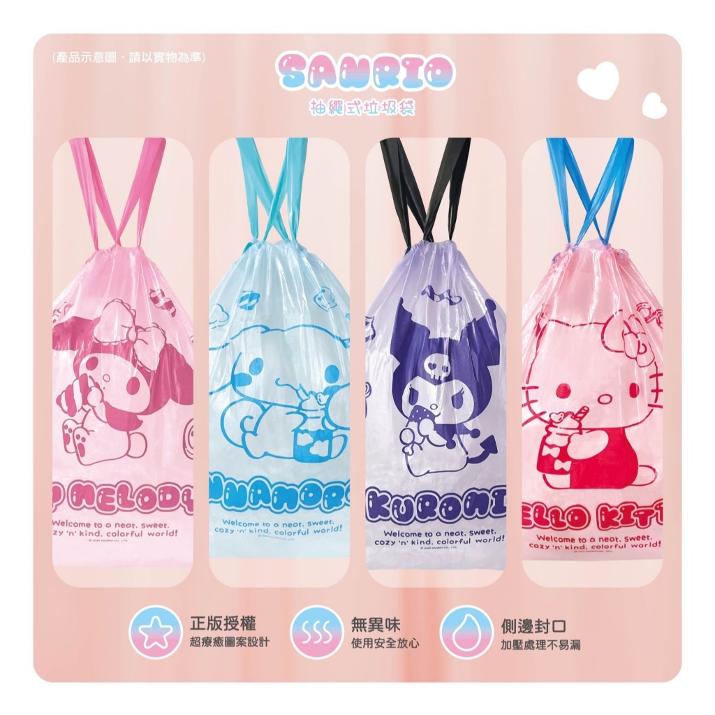 🍀F0110301-正版授權 三麗鷗抽繩式垃圾袋50入【一組4捲(四款各1)】