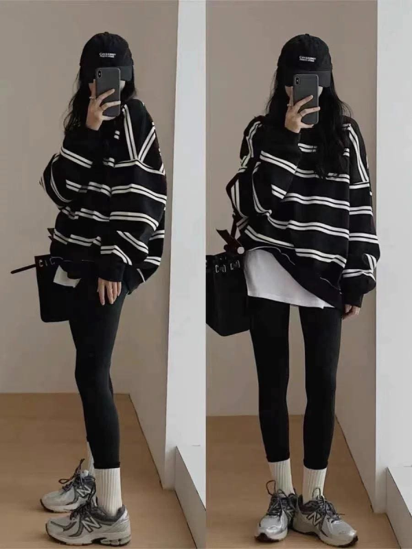 橫條紋設計自帶韓味 寬鬆落肩剪裁慵懶感十足