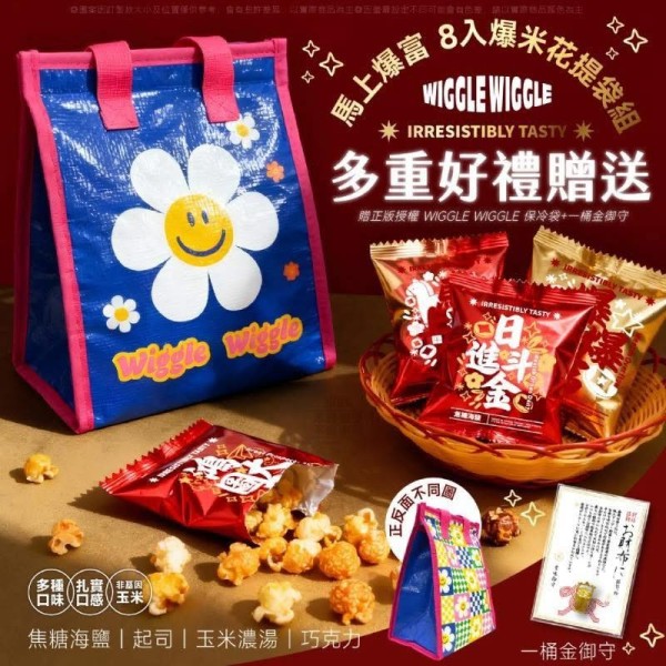新年限定 BOOM星樂園 馬上爆富 8入爆米花提袋組(贈正版授權 wiggle wiggle 保冷袋+ㄧ桶金御守)
