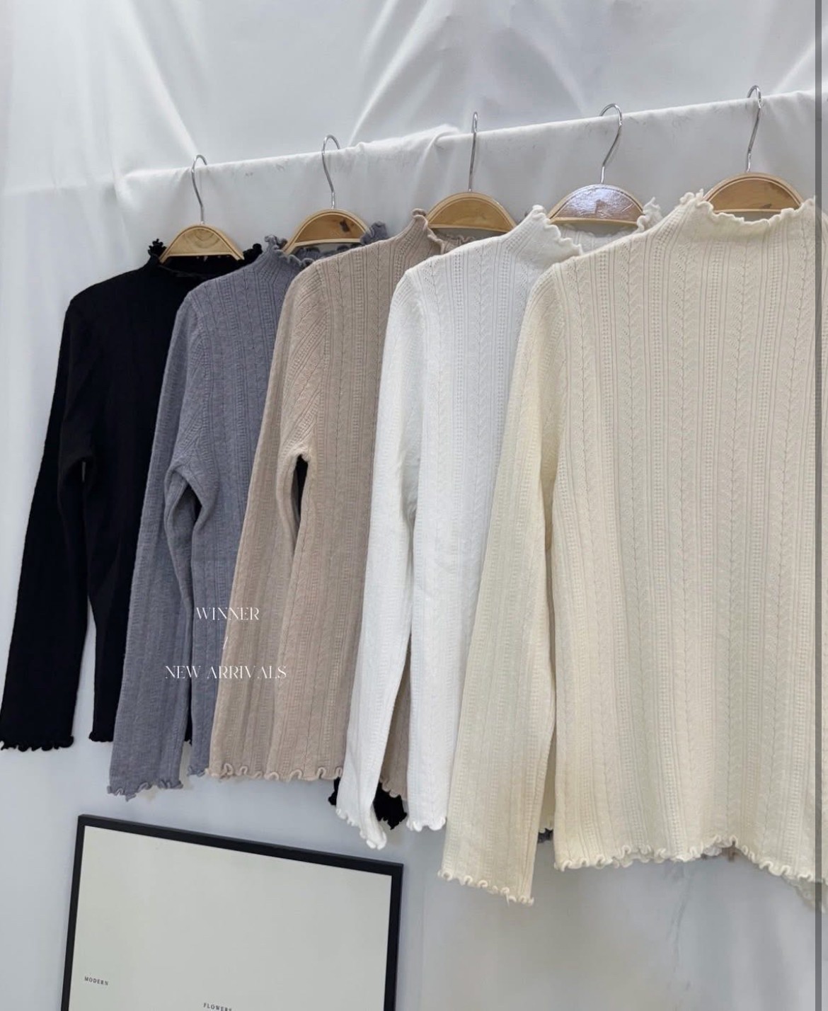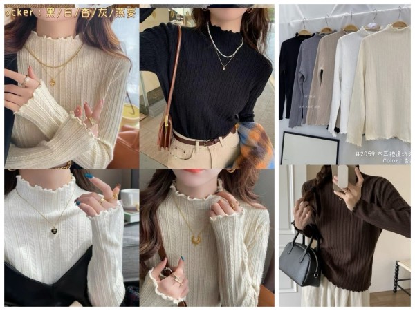 柔軟親膚木耳邊半高領針織上衣