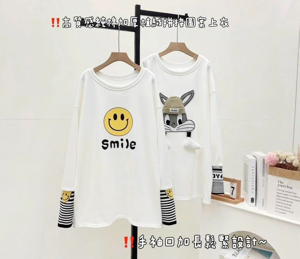 🌟 高質感純棉加厚植絨拼接圖案上衣🌟
