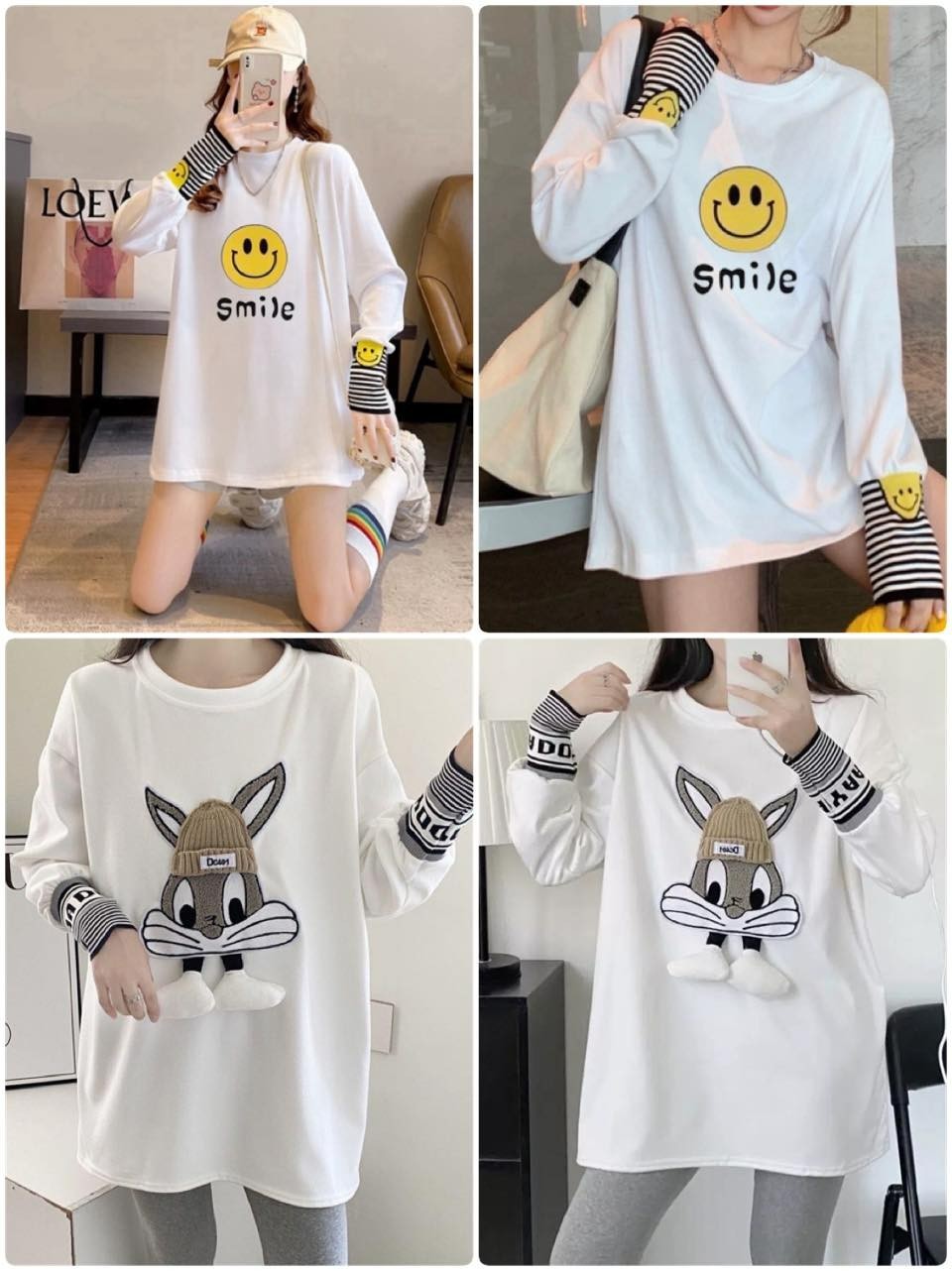 黃色笑臉拼接袖口條紋設計~~