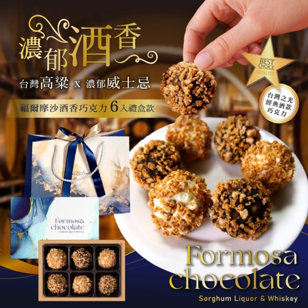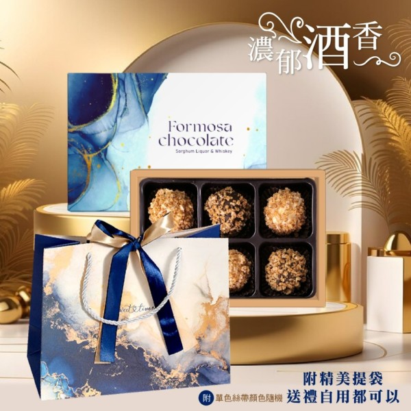 福爾摩沙酒香巧克力6入【附提袋及單色絲帶(顏色隨機)】