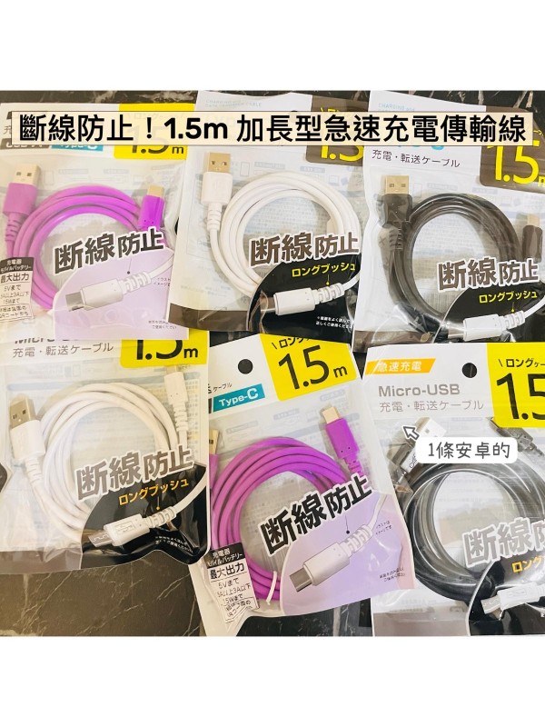 1.5m 加長線身:比一般線材更長,躺在沙發或床上邊充邊用超輕鬆。