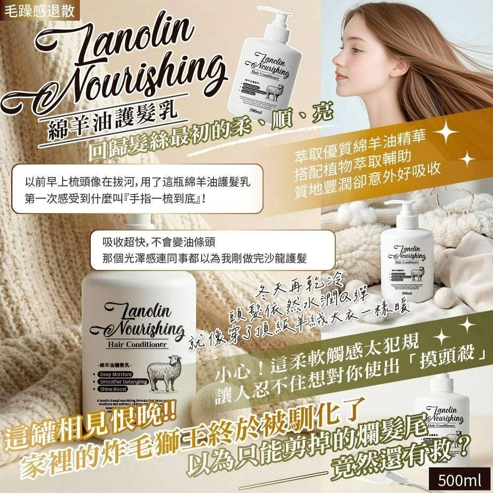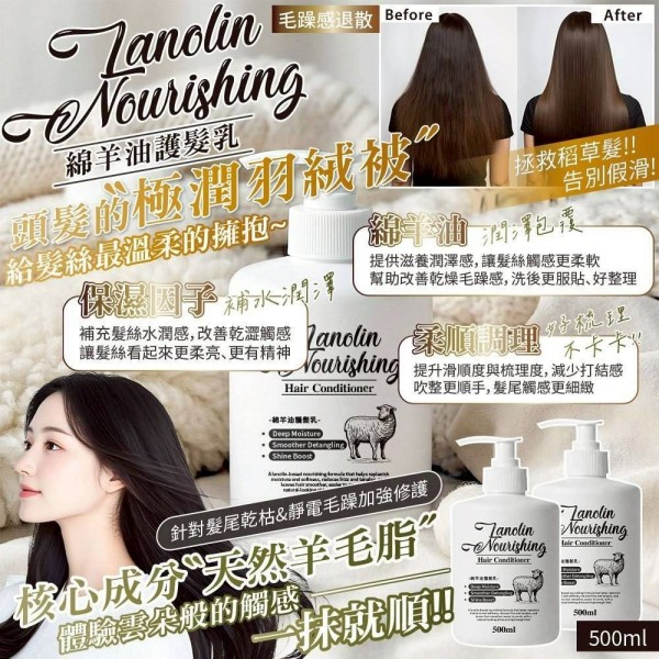 免沖洗綿羊油護髮素 大容量500ml【一組2瓶】