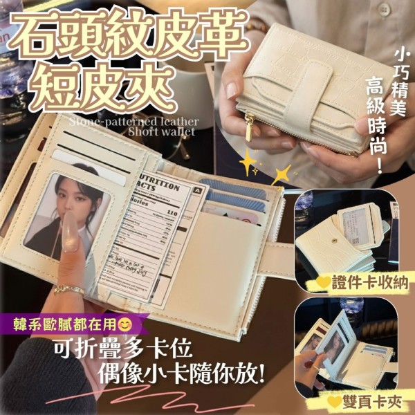 石頭紋PU皮革短皮夾,以細緻石頭紋理打造簡約質感外觀
