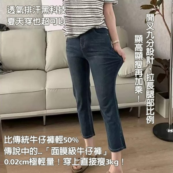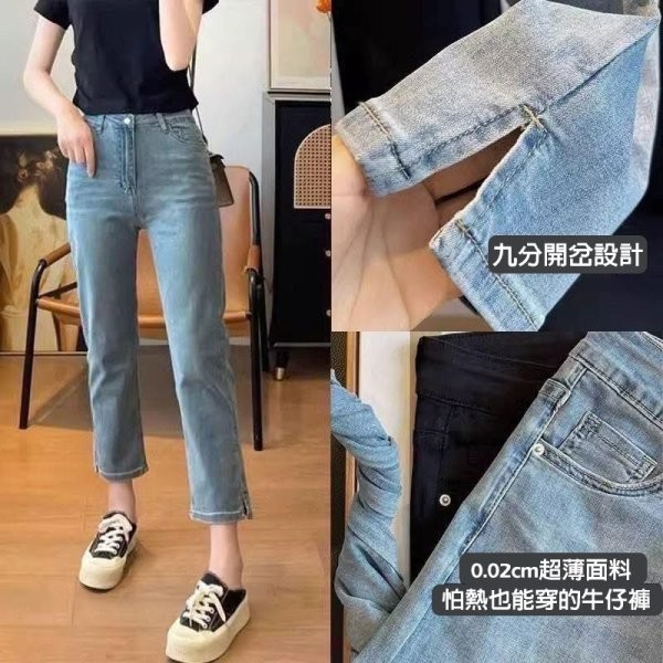 🌼【超薄彈面膜褲】小開叉九分牛仔褲/2色🌼