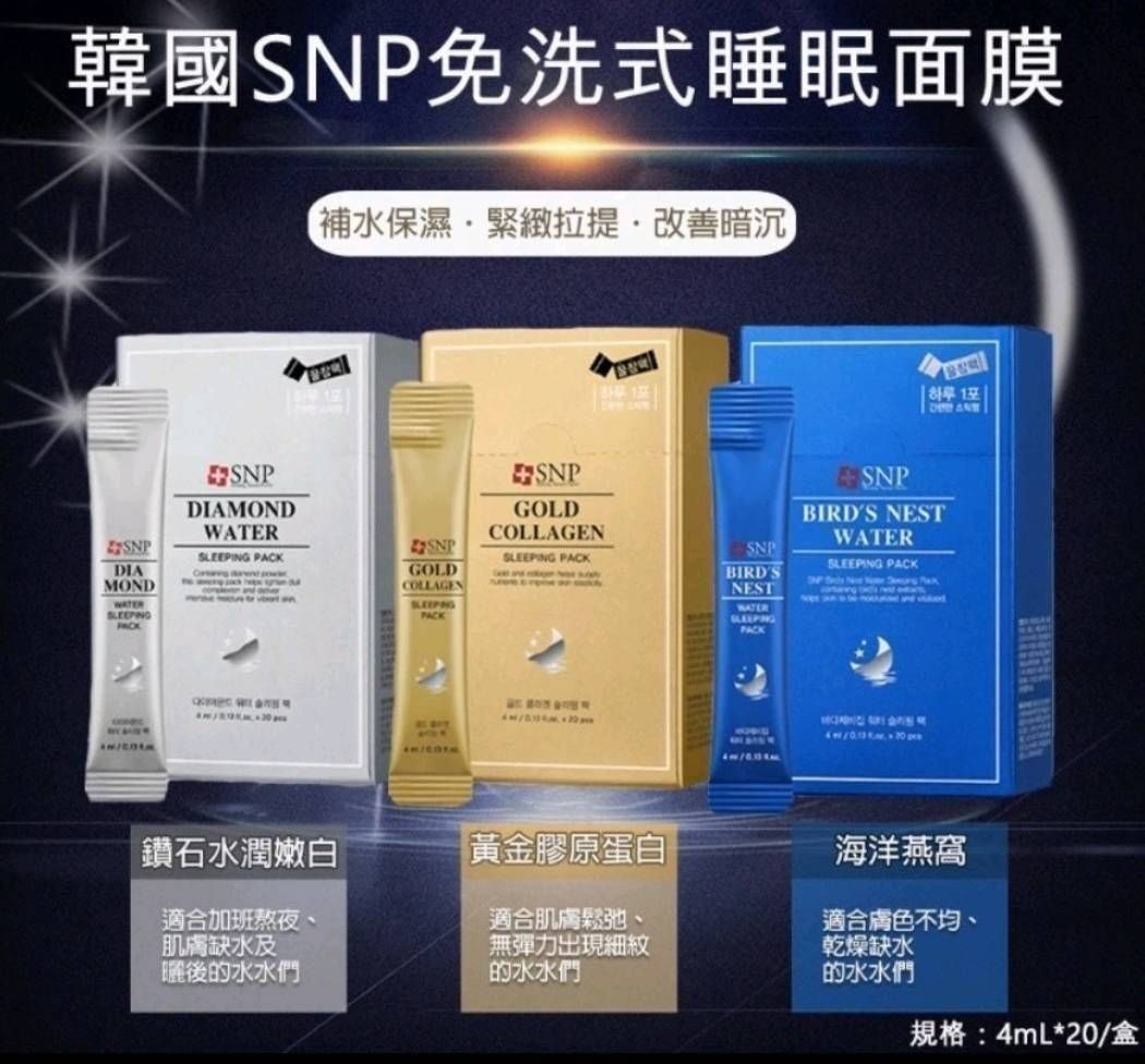 【3/10(二)收-韓國 SNP燕窩熬夜急救補水睡眠面膜】