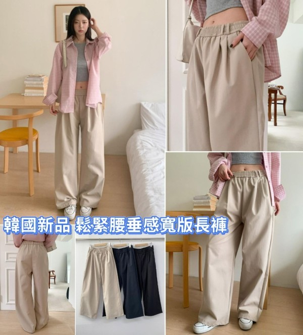 【3/11(三)收-韓國新品 鬆緊腰垂感寬版長褲】