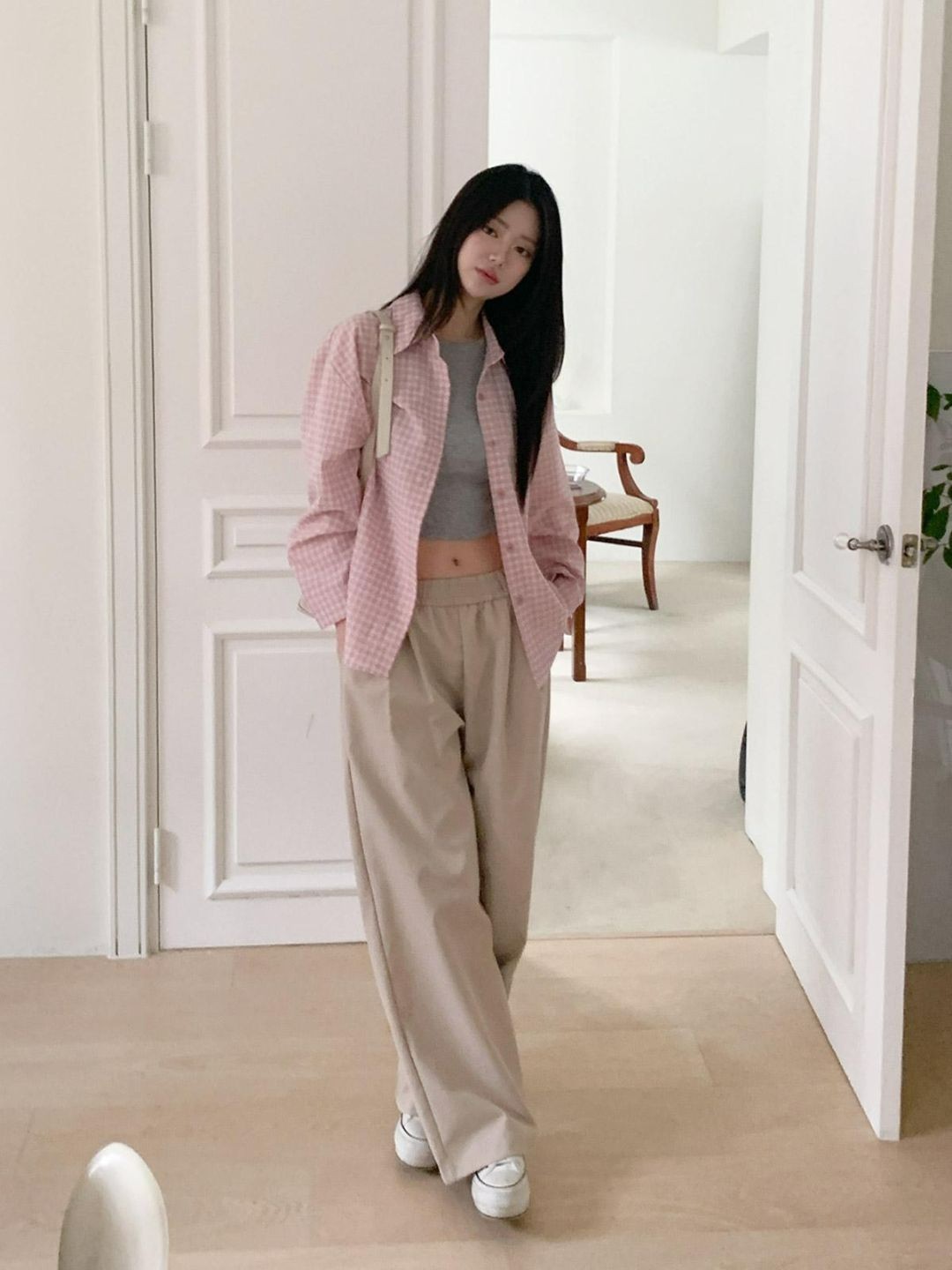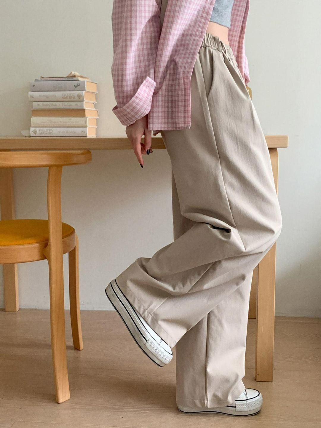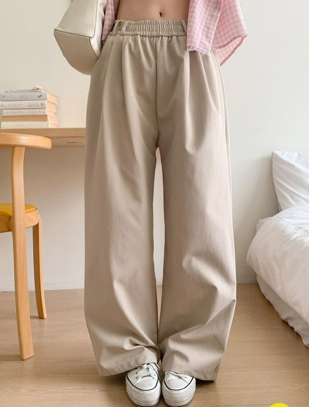 很多韓國女生其實都很喜歡這種寬版長褲,因為不只舒服,穿起來還很顯比例。