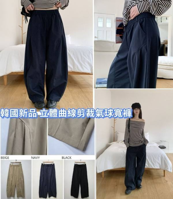【3/10(二)收-韓國新品 立體曲線剪裁氣球寬褲】