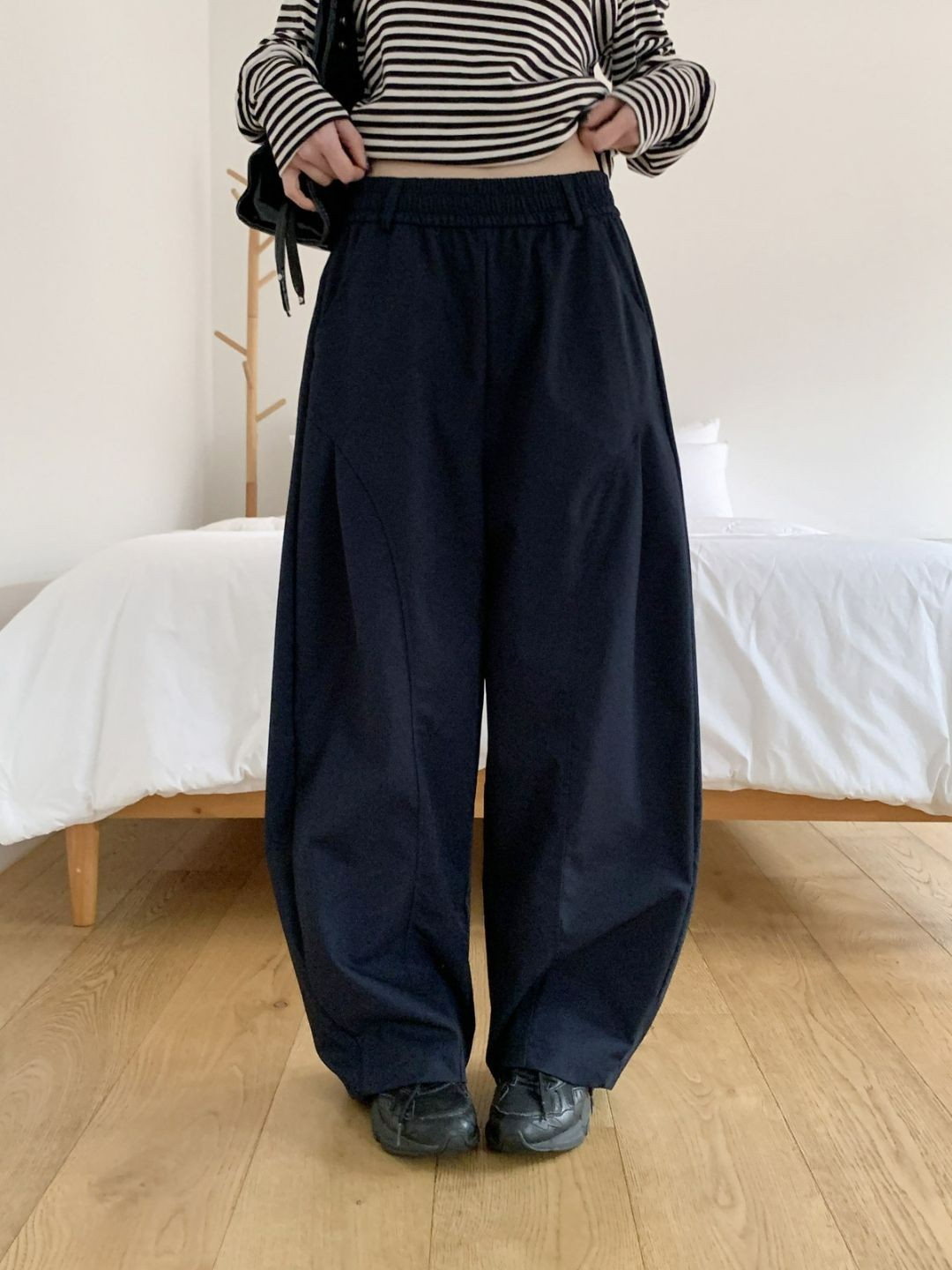 這種立體剪裁的氣球寬褲真的很值得入手,既能修飾身形,又不會過於正式