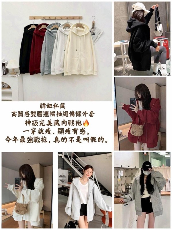韓妞 高質感雙層連帽抽繩慵懶外套