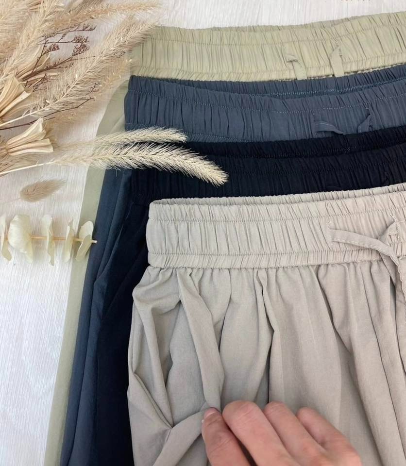 全鬆緊腰頭舒適不勒肉、精緻的車工顯質感、不變形、不扭轉~~~質感超好的~~ 有口袋喔~兩側口袋設計、真的很實用之外、也讓整體感更加分~