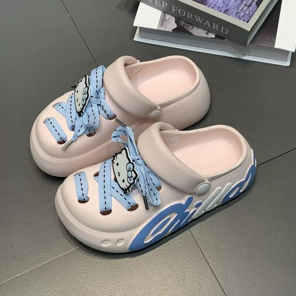 🌟許願款🎋-日系KT綁帶塗鴉洞洞包頭鞋🌟