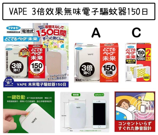 日本Fumakilla公司於1963年發明全世界第一個電子驅趕器VAPE,至今50年,其VAPE系列的驅趕器一直是日本市塲的主要品牌之一