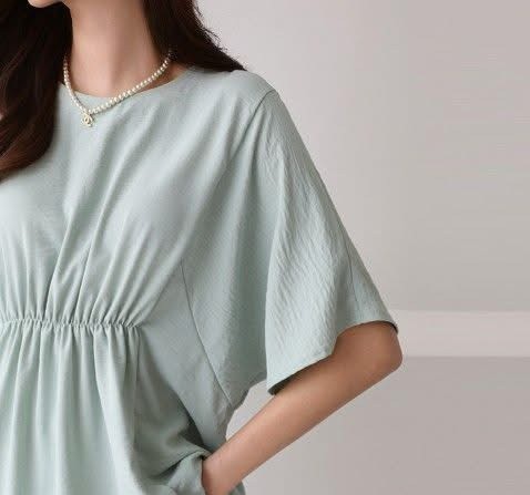 材質是那種帶一點皺感的輕薄布料,穿起來不悶、很透氣,夏天穿也完全OK,還有一種自然的慵懶質感。