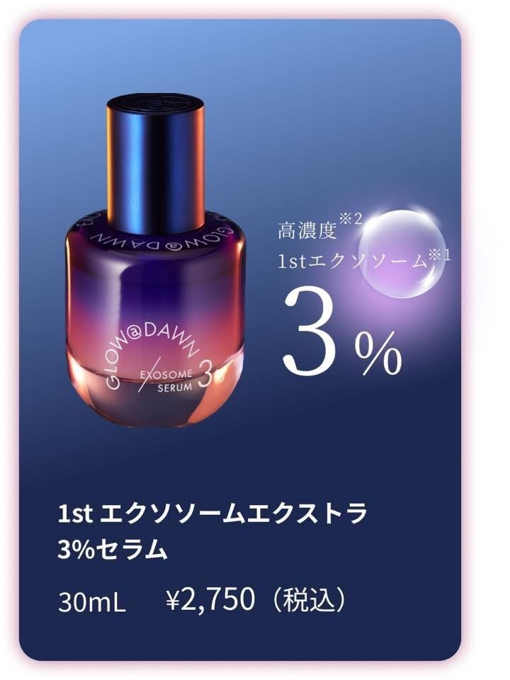 它主打的是現在日本保養很夯的 Exosome 外泌體保養,而且還是高濃度 3% 配方!