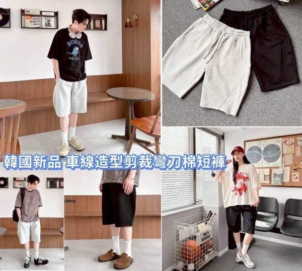 【4/17(五)收-韓國新品 車線造型剪裁彎刀棉短褲】