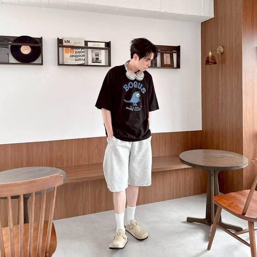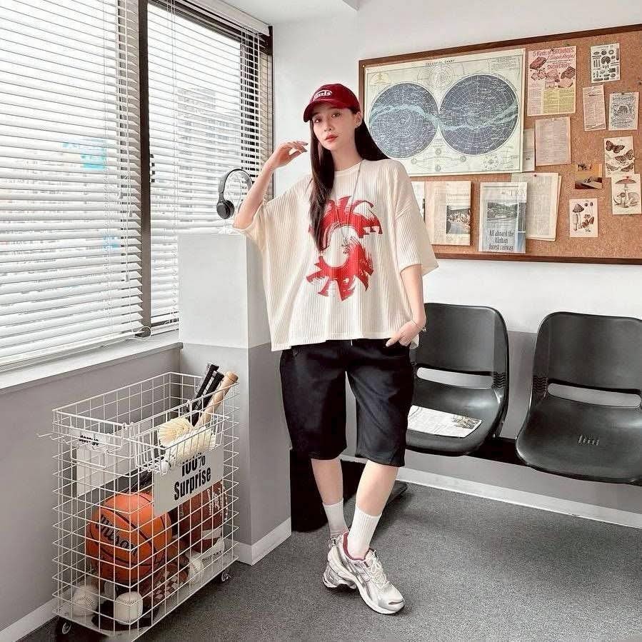長度剛好落在膝蓋附近,這種長度其實是現在很多韓系穿搭很愛的比例,搭寬版T恤、帽T、甚至襯衫都很好看。