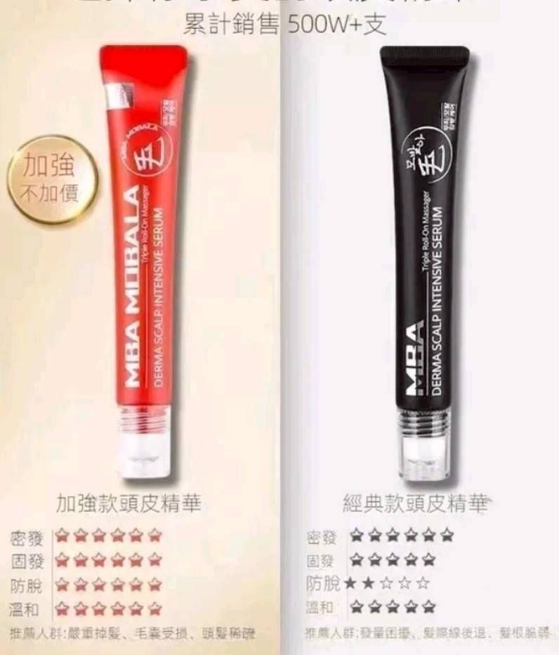 黑色款(強化型): 適合近期掉髮量明顯、髮根扁塌,想要增加頭髮密度、讓髮根更強韌的團友。