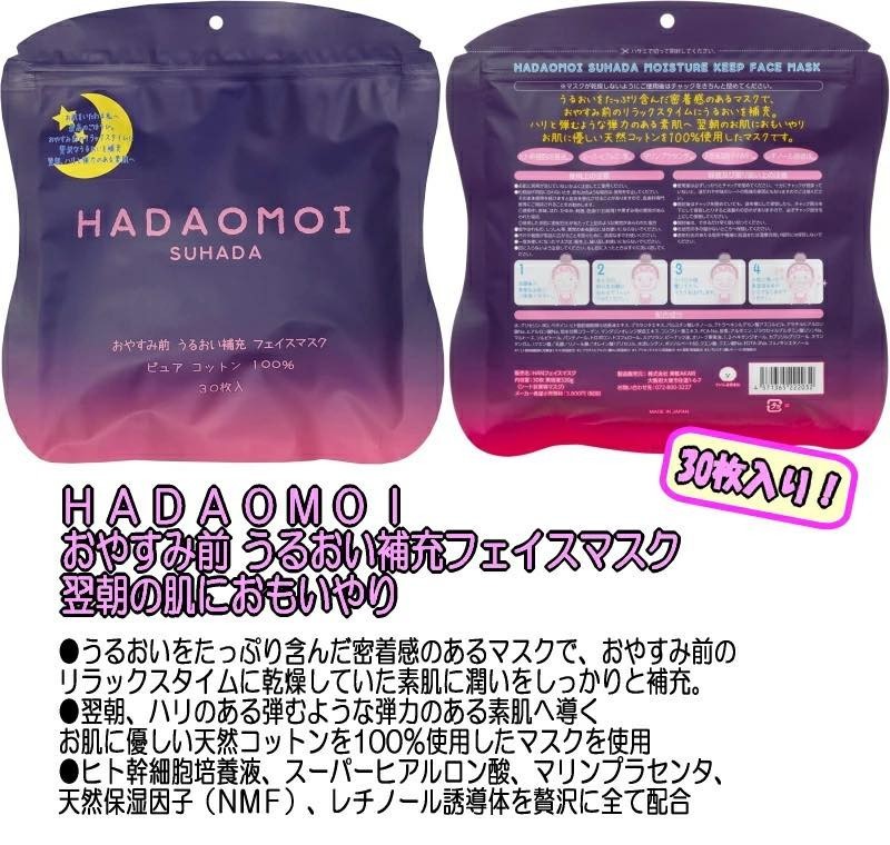 日本 HADAOMOI 睡前保濕修護面膜(大包裝30枚入)