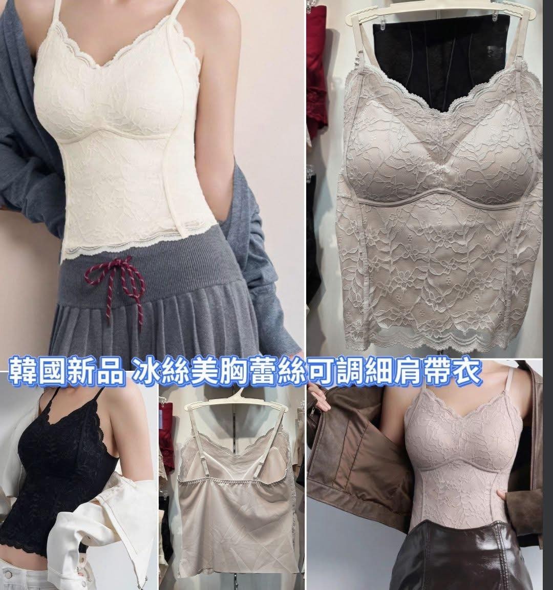 韓國新品 冰絲美胸蕾絲可調細肩帶衣