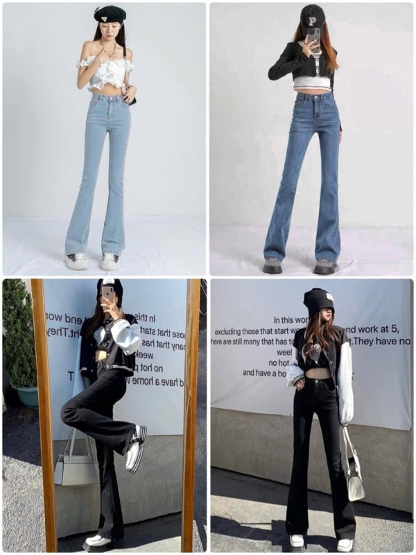 韓系 高腰彈力顯瘦喇叭牛仔長褲
